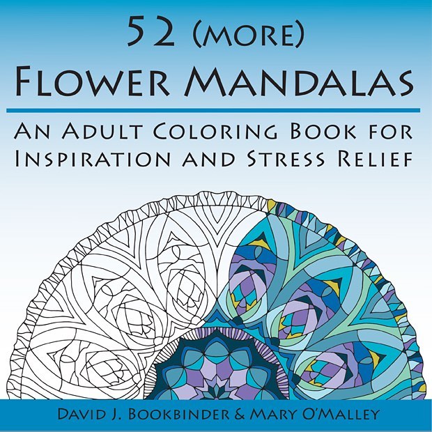 An Adult Coloring Book for Inspiration and Stress Relief. This coloring book is the result of a collaboration I did with photographer David Bookbinder. Each flower mandala is hand-drawn, based on David's beautiful and fascinating flower photograhs.
