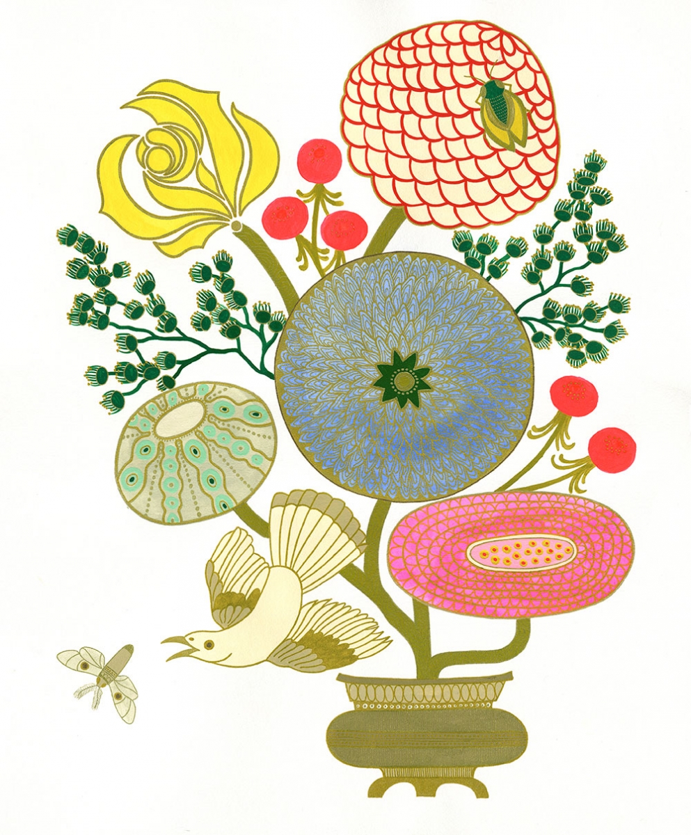 Gouache and gold ink on paper