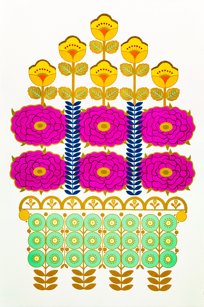 Gouache and gold ink on paper
