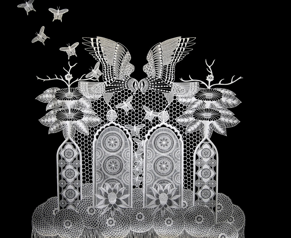 Silver metallic ink on black paper