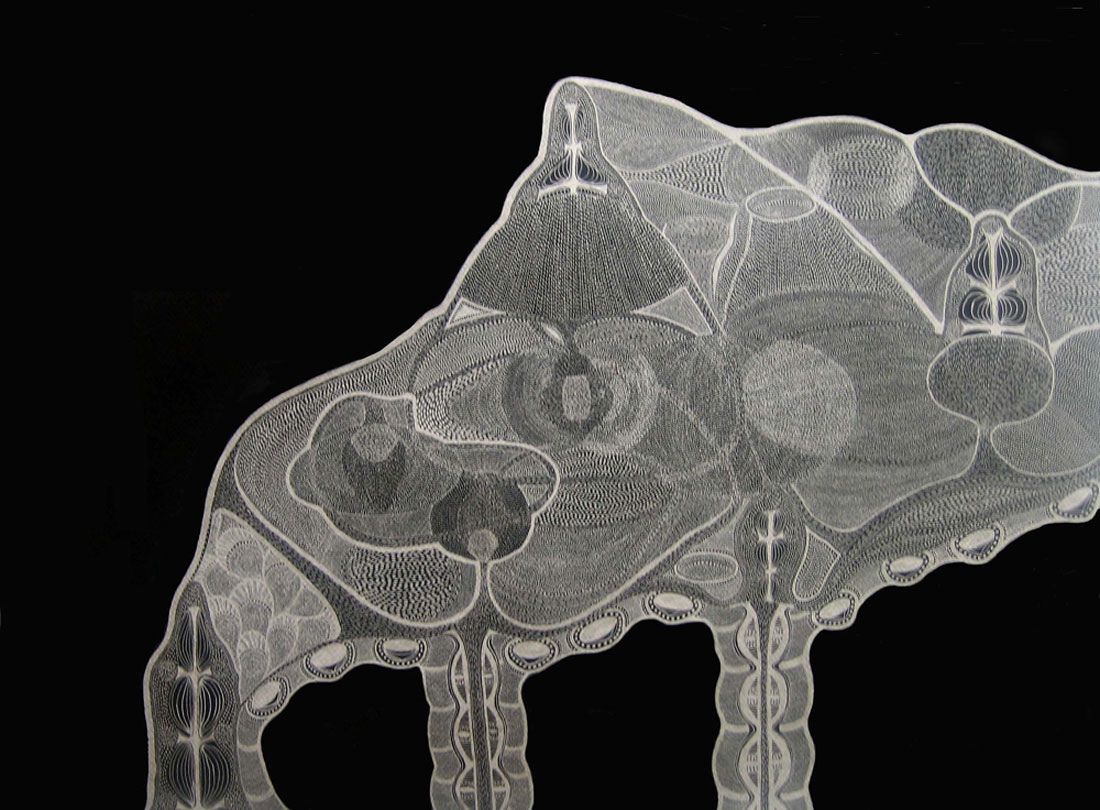 Silver metallic ink on black paper